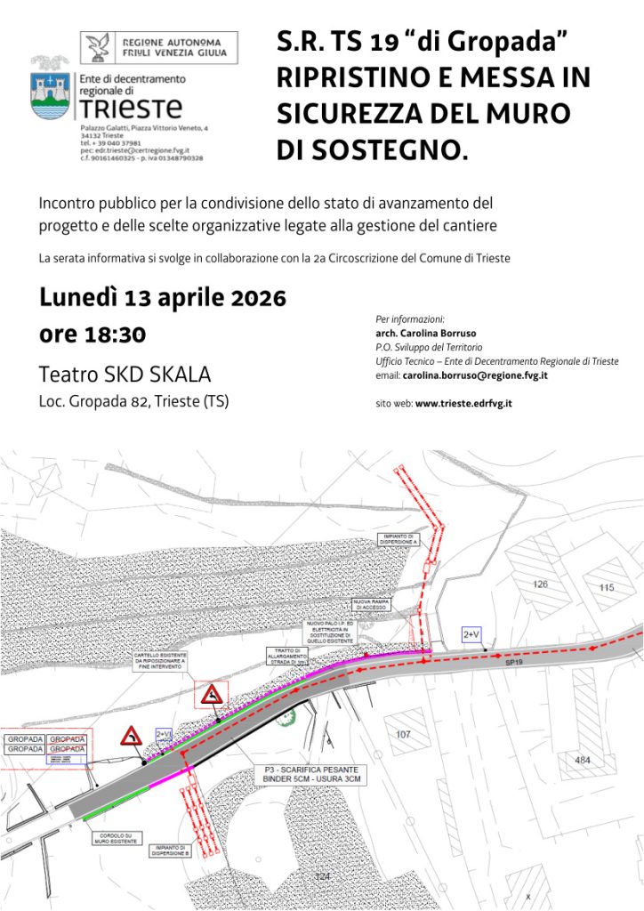 - S.R. TS 19 “di Gropada” Ripristino e messa in sicurezza del muro di sostegno: Incontro pubblico per la condivisione dello stato di avanzamento del progetto e delle scelte organizzative legate alla gestione del cantiere