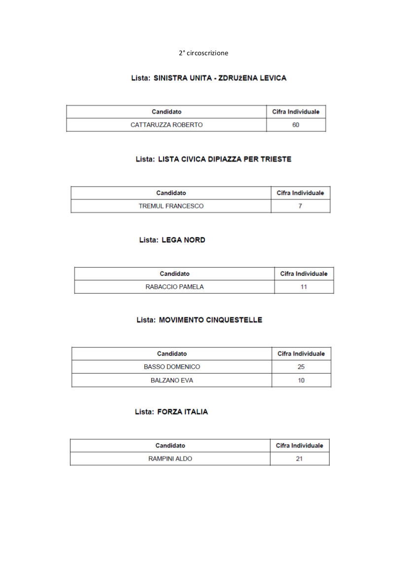 Nella seduta della II Circoscrizione che si è svolta in data 08 luglio 2016, sono stati eletti: